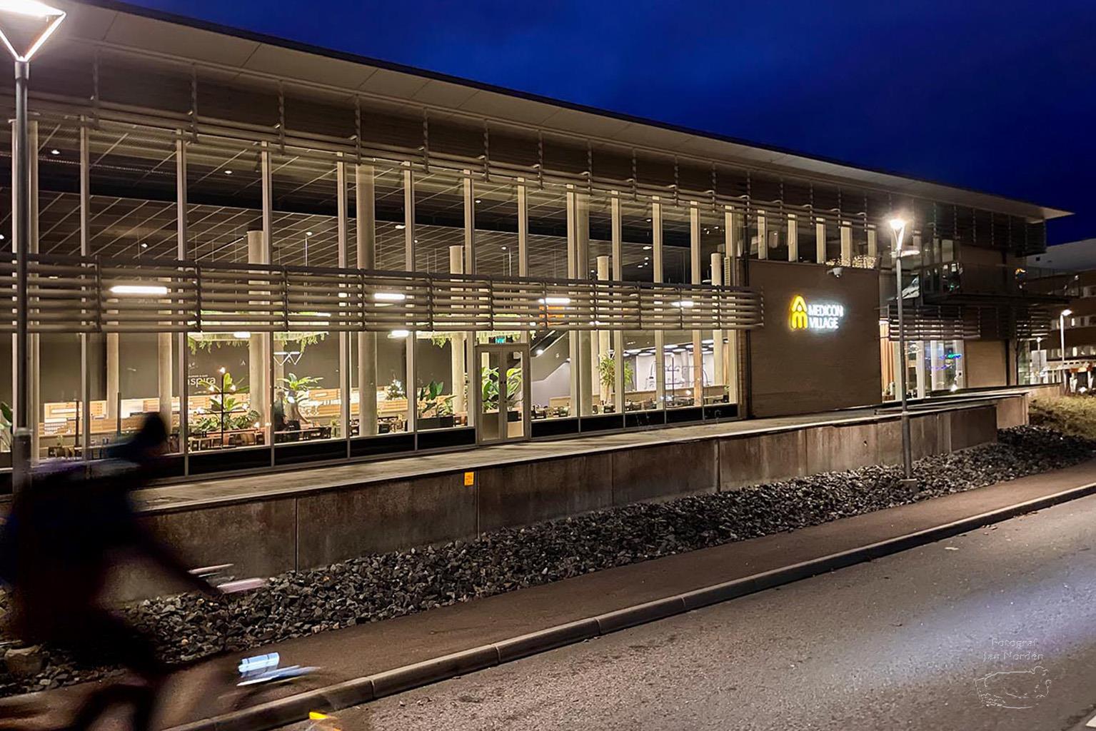 Nu finns vi i Medicon Villagerestaurangen Inspira, längst inne med en fenomenal bildskärm, bra utrymme, nära till vår egen lilla buffé, gott om plats och en trevlig scen att stå på, med eller utan mikrofon.