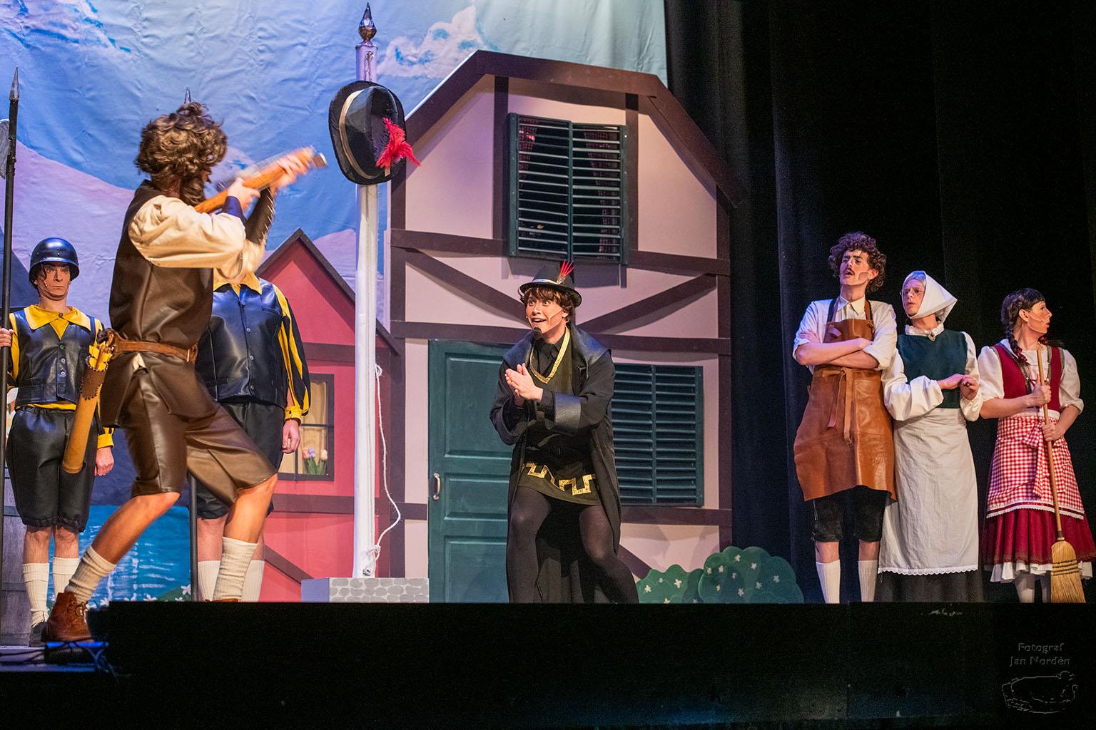 Här en bild från det lyckade spexet Wilhelm Tell, med många omtag på begäran av den jublande publiken